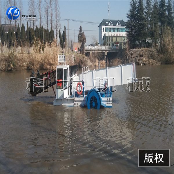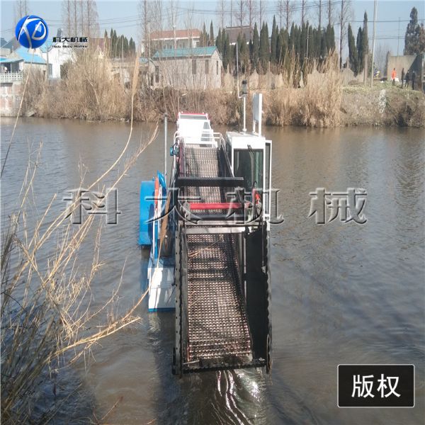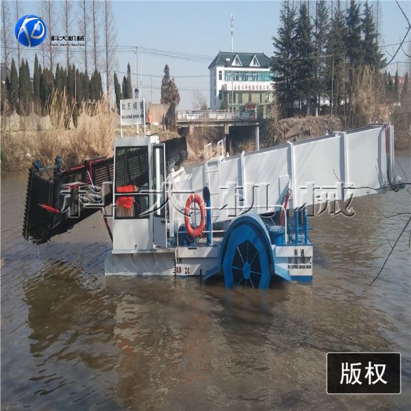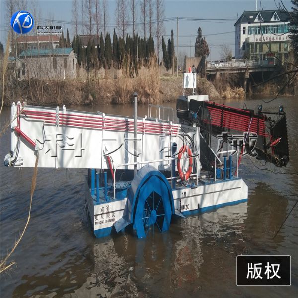 割草船, 是一種集割草、聚攏、打撈、濾水、輸送、卸載等于一體的現(xiàn)代化水草、水葫蘆收割設(shè)備。所有操作程序采用全液壓控制,簡(jiǎn)單、方便、靈活,是城市水面景區(qū)的保潔設(shè)備,也可作為垃圾清理船、湖面保潔船均收到良好的效果。